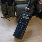 A protective skeleton for your Baofeng UV-5R. This mounts to the radio using the two pocket clip screw holes. It prevents the volume knob from accidental adjustment and the PTT button from being accidentally pressed.