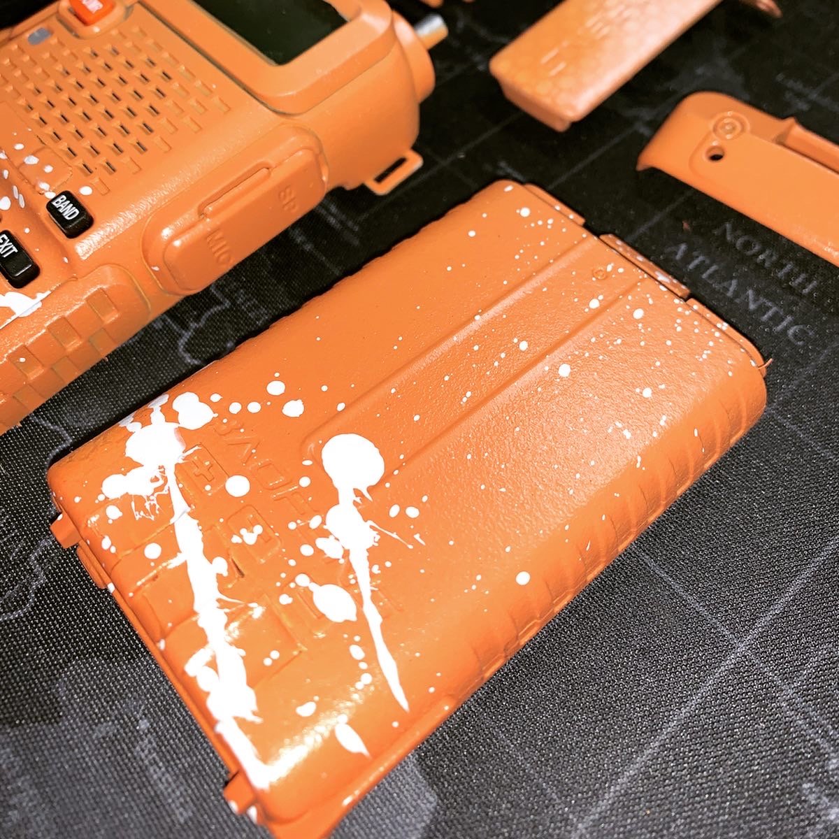 The “Cream Sickle” is a painted Baofeng Uv-5R Radio, Thats Ready to Rock! It'll consist of an Tangerine Orange , with a Splash of that Vanilla White to give it that O’l Vintage Vibe ! (Send me a Dm on IG for a more white than Orange Base color)